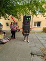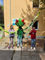 - Im Theaterprojekt wirkten Kinder und Jugendliche aus unterschiedlichen Regionen zusammen und bauten Großpuppen, die sie dann in der Abschlussveranstaltung aktiv werden ließen. Dieses Projekt verfolgte den kreativen Ansatz aus mehr oder eniger alltäglichen Materialien, wie zum Beispiel Umzugskartons, Poolnudeln, Bauschaum usw., Puppen entstehen zu lassen. Im nächsten Schritt war dann die Aufgabe des Teams diese Puppen aktiv zu bewegen und zur Musik tanzen zu lassen.