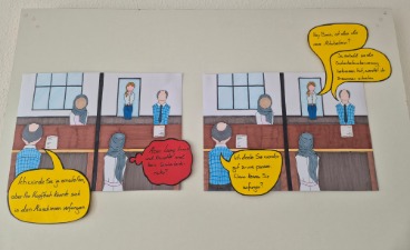 Durch Interviews mit Menschen unterschiedlicher Hintergründe sammelten sie persönliche Erfahrungen zu rassistischer Diskriminierung am Arbeitsplatz. Diese Erlebnisse wurden in kreativen Formaten wie Bildern, Comics oder anderen visuellen Darstellungen eindrucksvoll aufgearbeitet. Gleichzeitig wurde nicht nur auf Missstände hingewiesen, sondern auch konkrete Verbesserungsvorschläge direkt bildhaft gegenübergestellt und aufgezeigt.