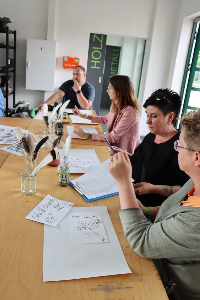 Die Akademie feierte im Juni ihr Sommerfest im Archäotechnischen Zentrum Welzow (atz). Nach einem Empfang und der Vorstellung der Mitarbeitenden des atz ging es gleich in Kleingruppen an das Kennenlernen von altem Handwerk und den vorgeschichtlichen Arbeitstechniken.