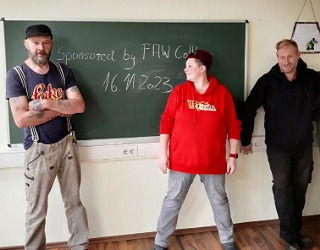 Für die unkomplizierte und tatkräftige Unterstützung beim Möbeltransport in Königs Wusterhausen durch Mitarbeiter des Mehrgenerationenhauses „Kleeblatt" in Bestensee bedankt sich die FAW gGmbH, Akademie Cottbus mit der Spende einer Kreidewandtafel.