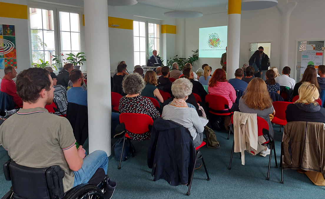 Frank Ostermann, ebenfalls Logopäde, sprach unter dem Titel „Berufliche Teilhabe und die Besonderheiten für Menschen mit Aphasie“ über seine Erfahrungen in der beruflichen Rehabilitation. Als vierter Referent stellte sich Thomas Barthold vor – als Aphasie-Betroffener und zugleich in seiner Rolle als Vorsitzender des „Aphasikerzentrum Südwestsachsen“ e. V.