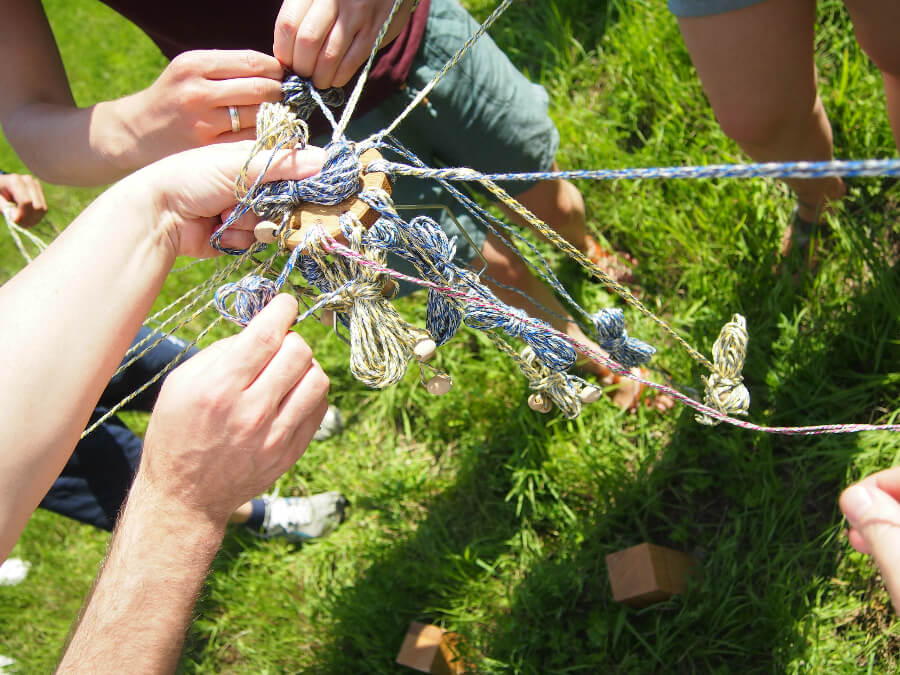 Sie probierten bei fast 40 Grad gemeinsam einige Teamübungen aus und überlegten, wie und wo man was anwenden kann. Neben den Klassikern wie „Turmbau zu Babel“, „Eier-Transport“,„Pipeline“ und dem „schwebenden Stab“ wurde auch kleinere Übungen zum Einstieg oder zur Auflockerung, wie z.B. „Chickenrun“ oder „Stab-Hip-Hop“ erprobt.