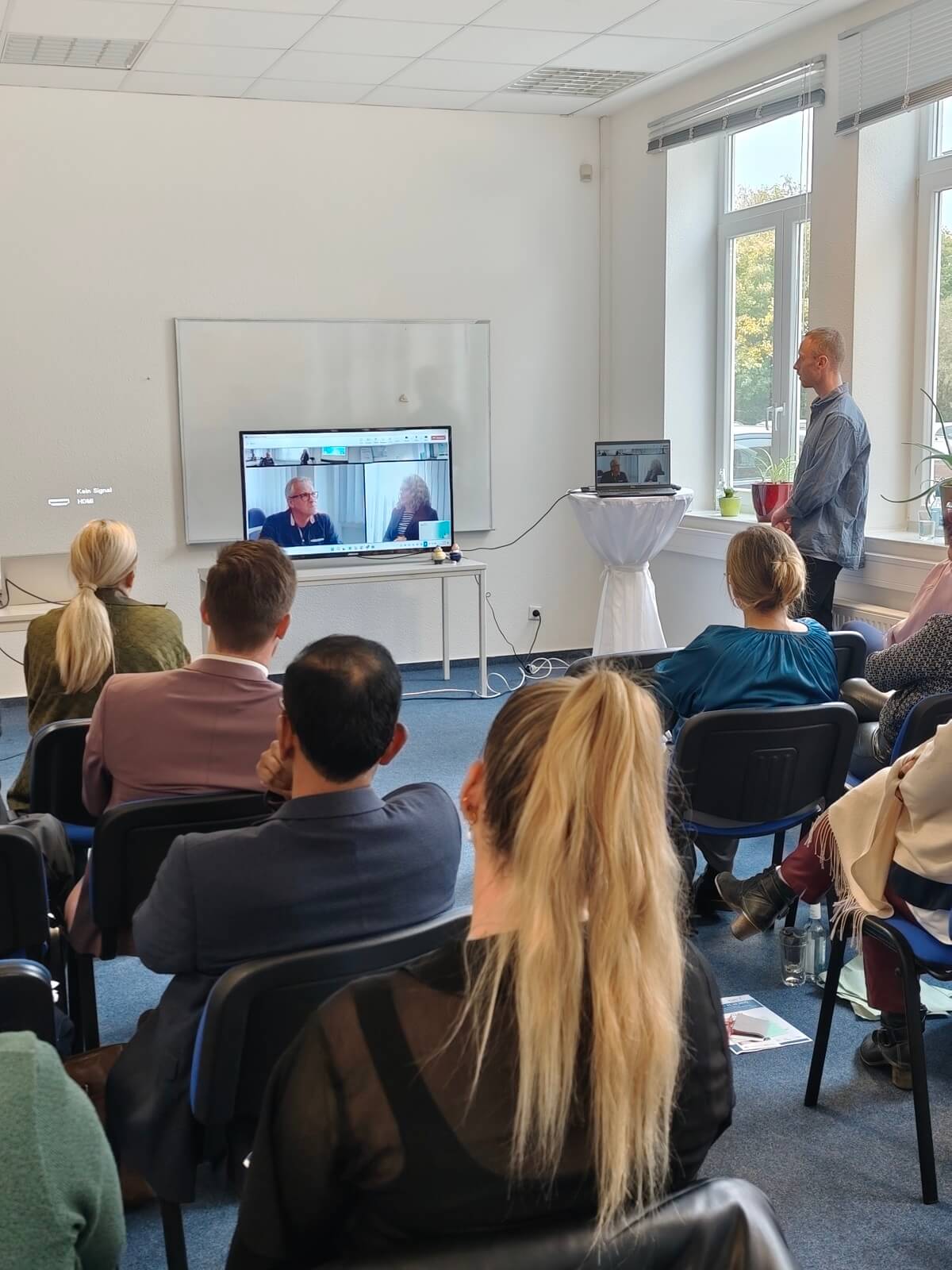 Ein besonderes Highlight war der Netzwerklunch, bei dem die Inhalte der Vorträge vertieft und neue Kontakte geknüpft wurden. Ebenso beeindruckte die hybride Unterrichtsdarstellung: Über eine Videokonferenz mit dem Standort Rostock wurden Mitarbeitende live via Microsoft Teams in den Vortrag eingebunden und berichteten von ihren Erfahrungen mit hybriden Unterrichtsformen.