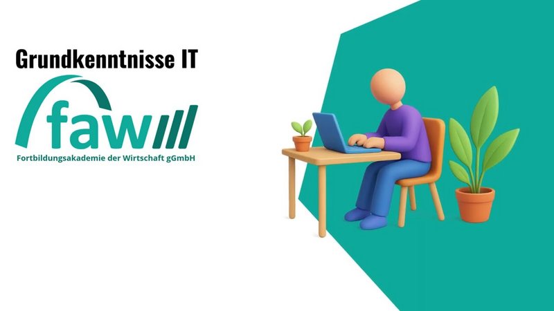 Inhalte: Grundkenntnisse PC, Internet, Outlook, Hardware, Software, Netzwerke, MS Word, MS Excel, Ergonomie am Arbeitsplatz, Bewerbungscoaching